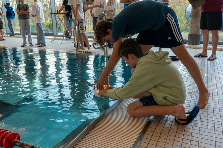 Der Wettbewerb erfolgte einerseits über Schnelligkeit einer limitierten Strecke und andererseits über die Streckenweite. Bei der Konstruktion der Boote mussten Vorgaben eingehalten werden, die die TeilnehmerInnen jedoch problemlos erfüllten, wie sich bei der Präsentation der Arbeiten herausstellte. So waren z.B. die Abmessungen vorgegeben, die Boote mussten ohne Starthilfe auskommen und der Wasserinhalt von Rohren und Verdampfer war auf max. 100 ml begrenzt.